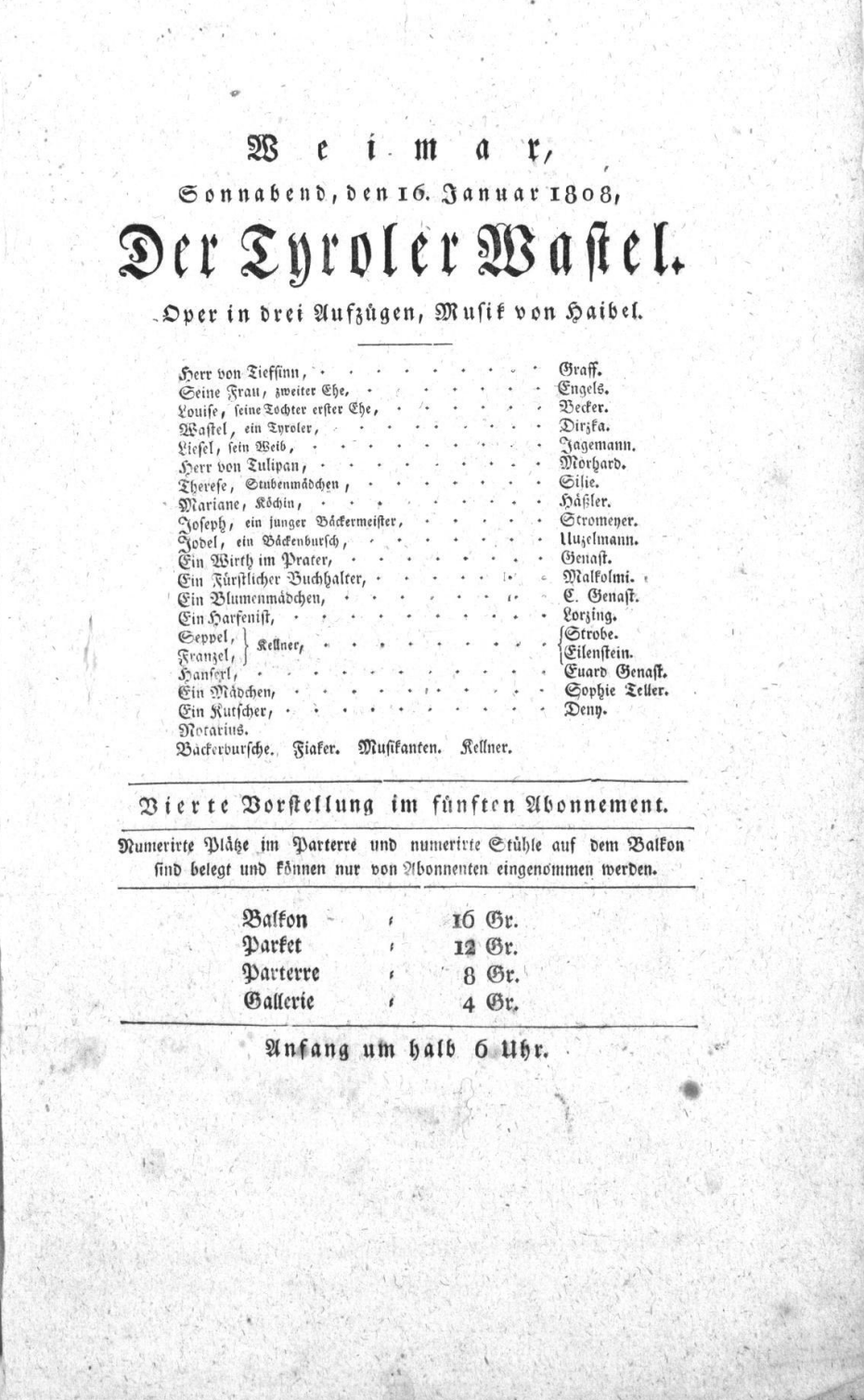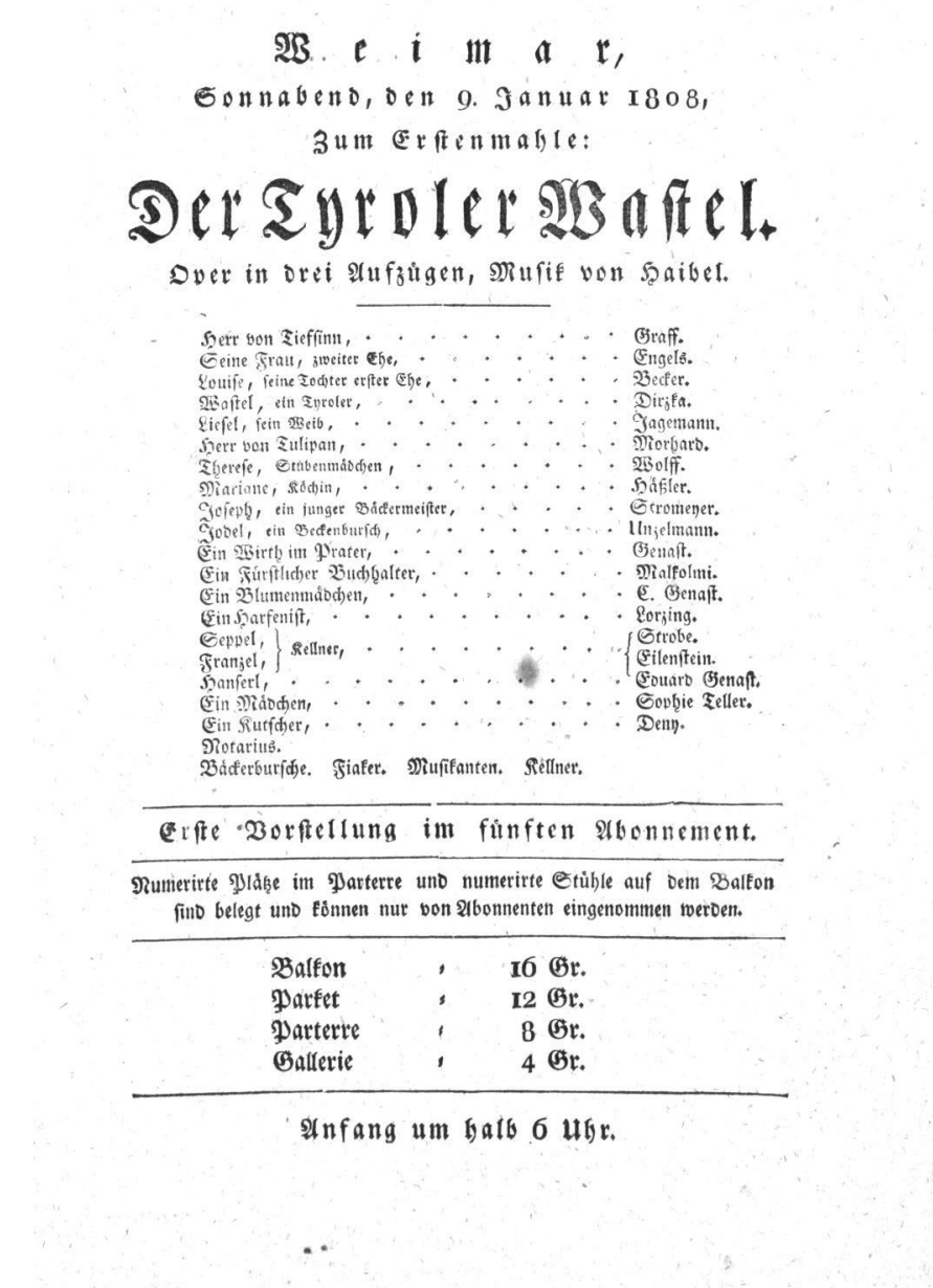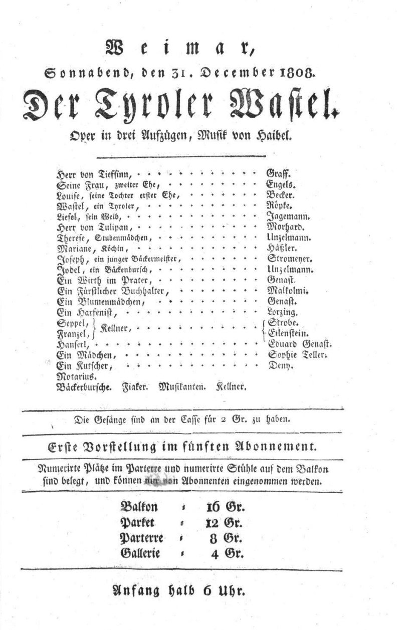 - 16.01.1808 in Weimar (Hoftheater)