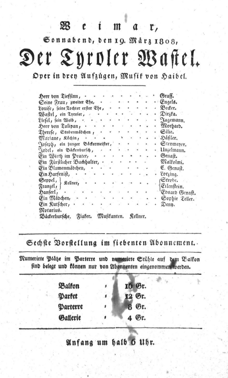 - 19.03.1808 in Weimar (Hoftheater)