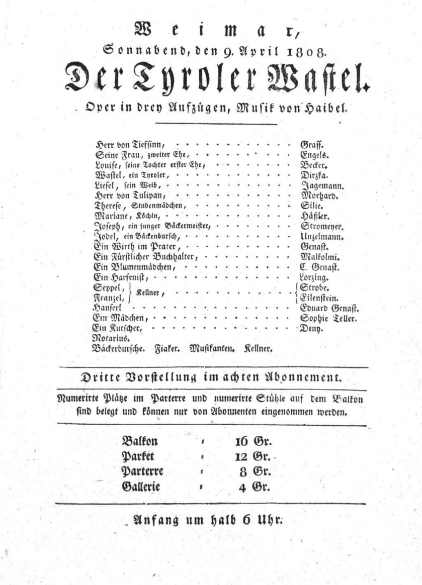 - 09.04.1808 in Weimar (Hoftheater)