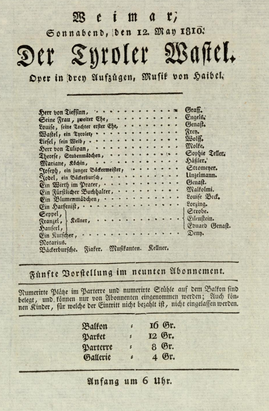 - 12.05.1810 in Weimar (Hoftheater)