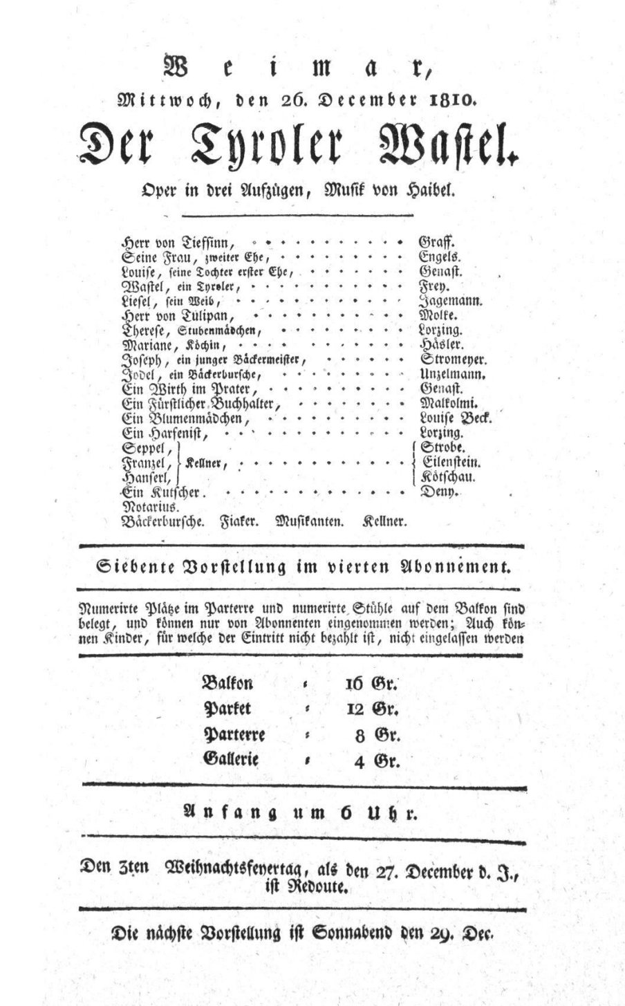 - 26.12.1810 in Weimar (Hoftheater)
