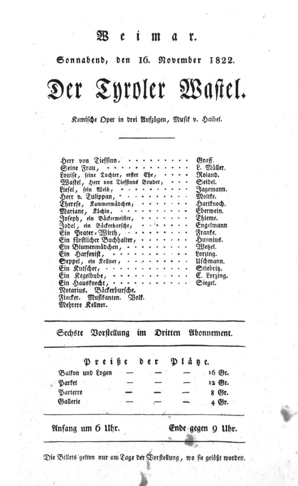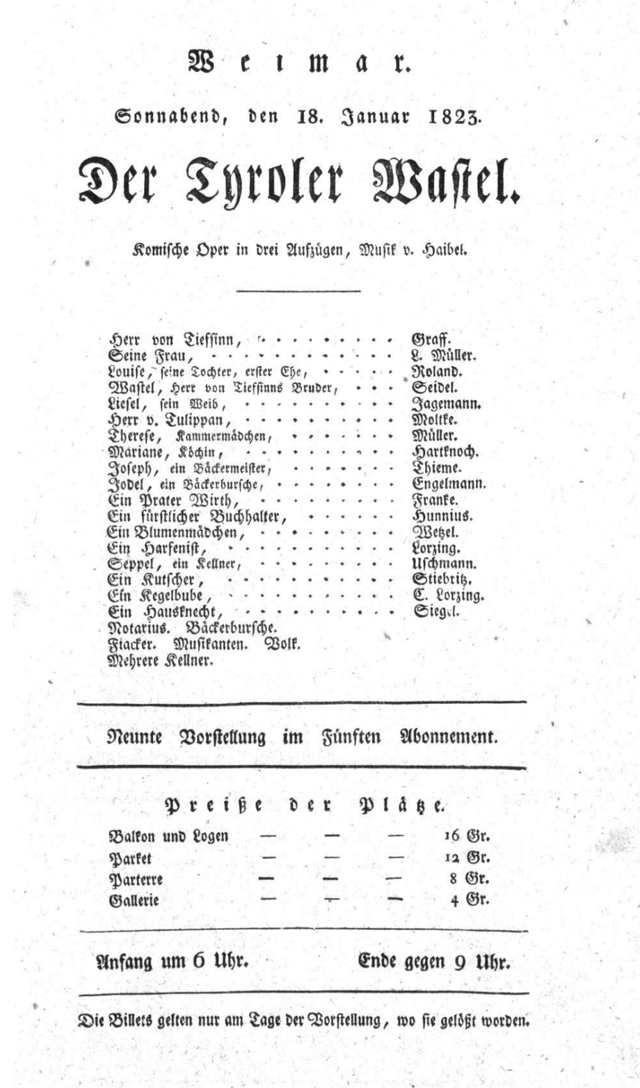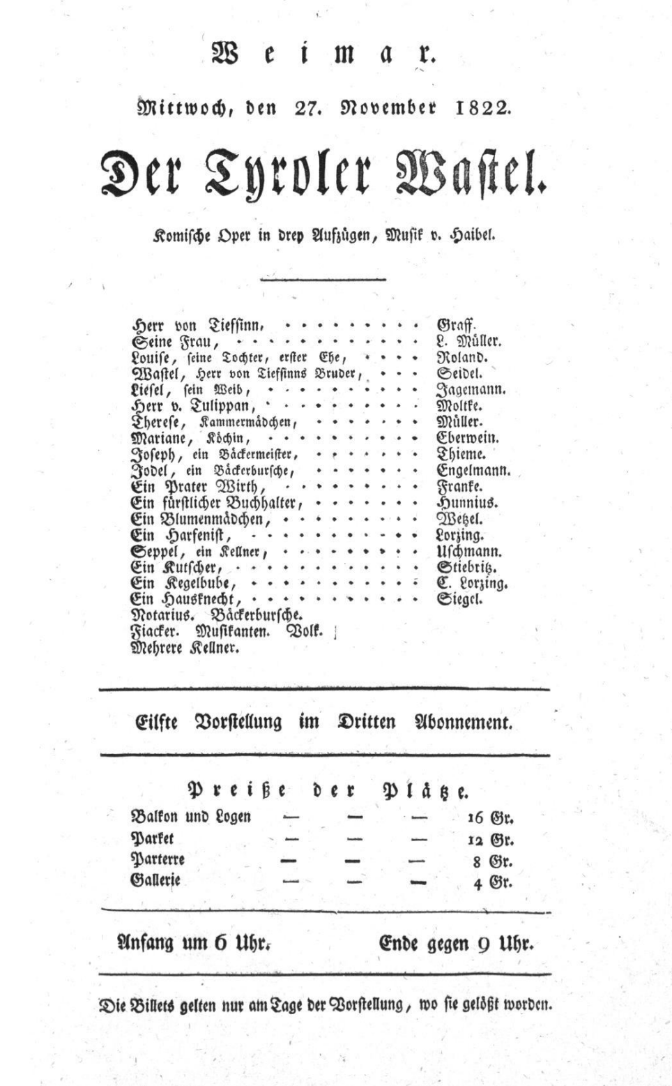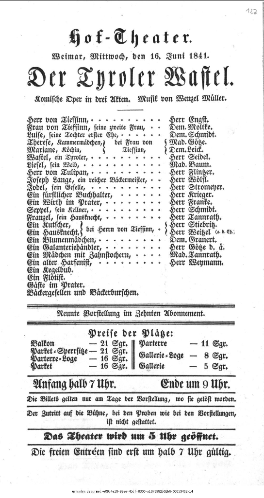 - 16.11.1822 in Weimar (Hoftheater)